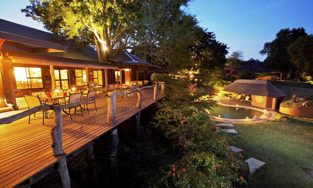 A large wooden safari deck - the ideal vantage point from which to observe the steady flow of animal life at the Sand River’s edge